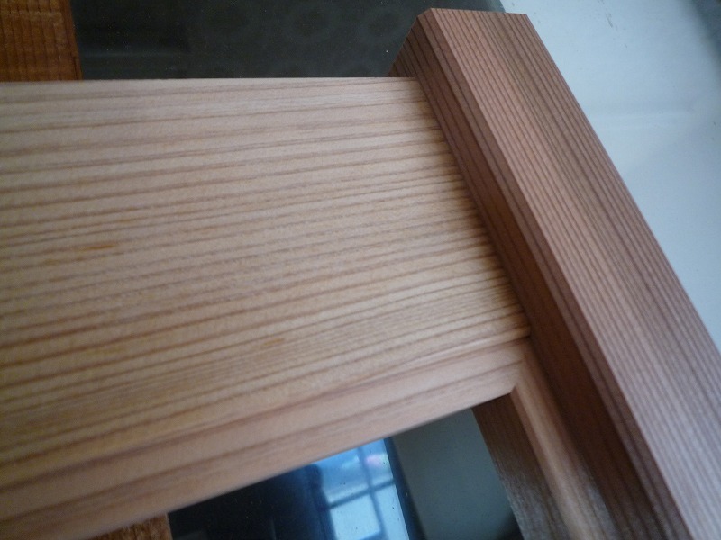 2016/11/06 今回製作した無地障子の 詳細を紹介します 縦框と下桟は両面角面です その内側に付け子が入ります 障子紙などの糊代です 付け子がない場合は 框と横桟に紙決り加工をします 裏側から見た上桟 うす桟(20㎜)仕様で 表側が角面で、こちらは糸面 表側は、紙などを貼るので ホネ組と付け子が平らで こちらは、付け子とホネ組を 見込み(厚み)違いにして その分、糸面を取ってあります
